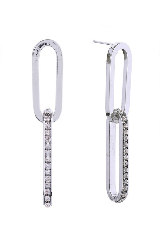 14 K Long Link Pave CZ Earring